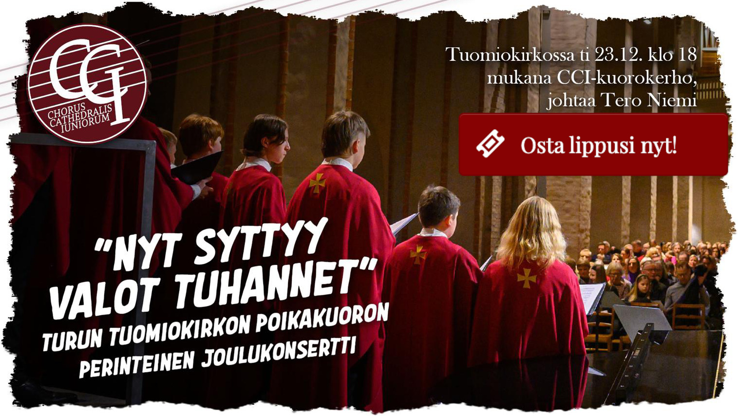 Turun Tuomiokirkon poikakuoro pitää perinteisen, tunnelmallisen joulukonsertin Tuomiokirkossa jouluaaton aattona. Mukana konsertissa on myös CCI:n kuorokerho. Kuoroa johtaa Tero Niemi. Liput 15/10 €, alle […]